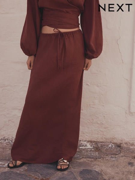Roman Red Boho Floral Shirred Waist Maxi Skirt