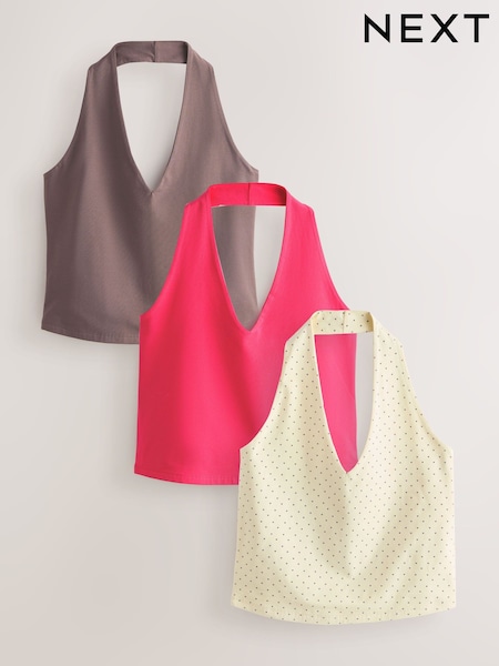 Pink/Yellow/Brown Halter Neck Tops 3 Pack