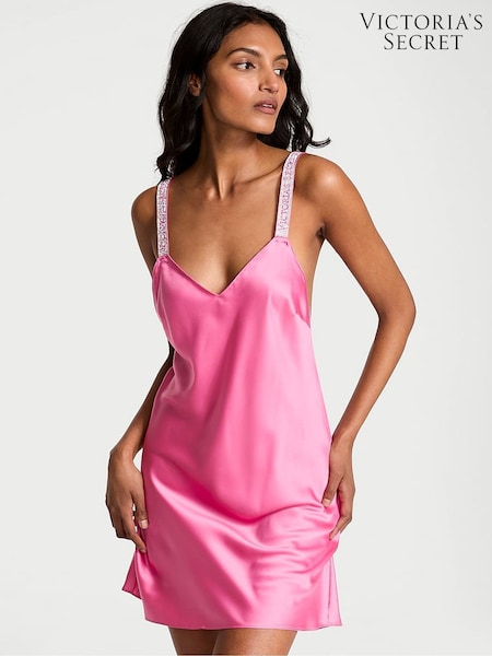 Victoria's Secret Rose Garden Pink Shine Satin Strappy Back Slip