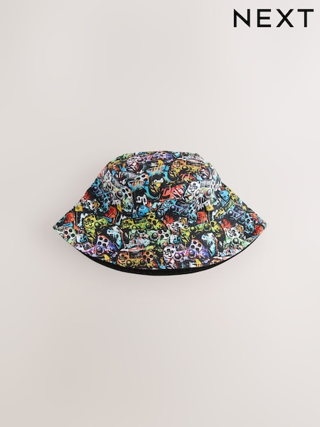 Black Graffiti Gamer Reversible Bucket Hat (1-16yrs)