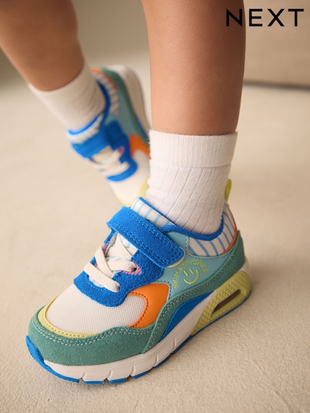 Blue/Green Standard Fit (F) Elastic Lace Trainers