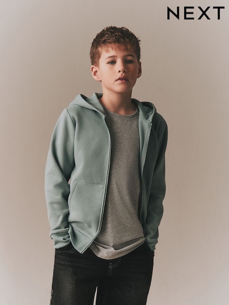 Mineral Green 1 Pack Plain Zip Through Hoodie (3-16yrs)