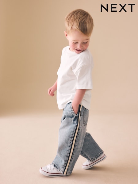 Light Blue Side Stripe Wide Fit Barrel Jeans (3mths-7yrs)
