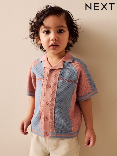 Blue/Orange Knitted Revere Collar Polo Shirt (3mths-7yrs)