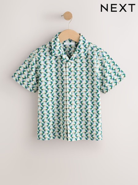 Green/Ecru Geo Print Short Sleeve Revere Collar Shirt (3-16yrs)