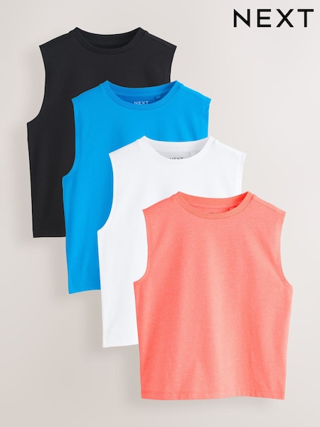 Black/White/Blue/Fluro Pink Tank Vest 4 Pack (3-16yrs)