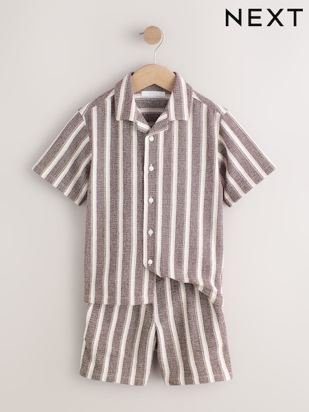 Chocolate Brown Short Sleeve Textured Stripe Shirt and Shorts Set (3-16yrs)