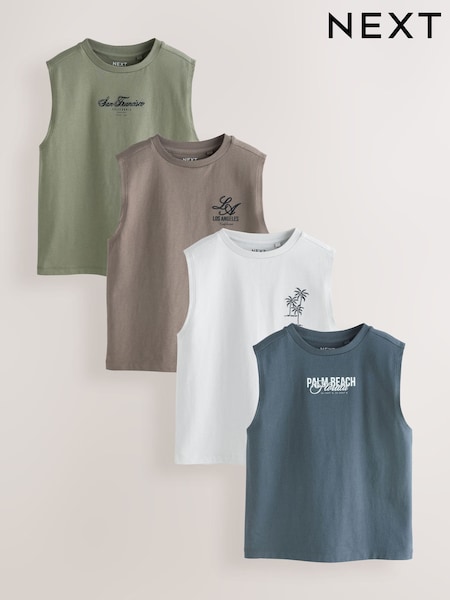 Light Grey/Brown/Charcoal/Khaki Tank Vest 4 Pack (3-16yrs)