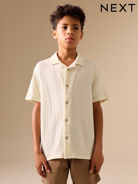 Ecru Short Sleeve Revere Collar Double Cloth Shirt (3-16yrs)
