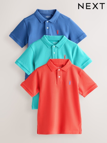 Coral/Aqua/Navy Short Sleeve Polo Shirts 3 Pack (3-16yrs)
