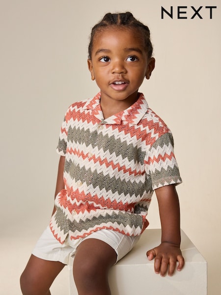 Red/Ecru Striped Short Sleeve Revere Collar Textured Shirt (3mths-7yrs)