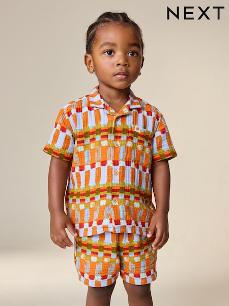 Multi Rust Stripe Short Sleeve Double Cloth Shirt & Shorts Set (3mths-10yrs)