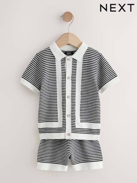 Black/White Knitted Polo Shirt and Shorts Set (3mths-10yrs)
