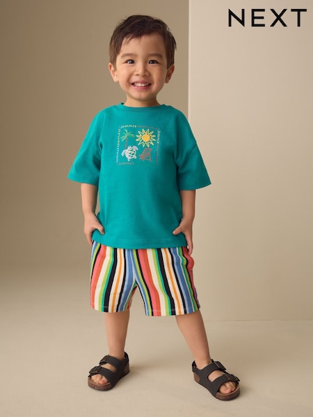 Green Beach Short Sleeve T-Shirt and Shorts Set (3mths-7yrs)