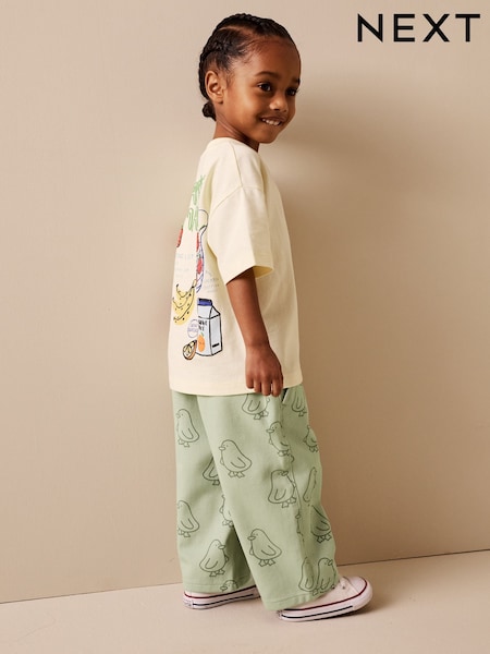 Green Duck Print Pull On Wide Trousers (3mths-7yrs)