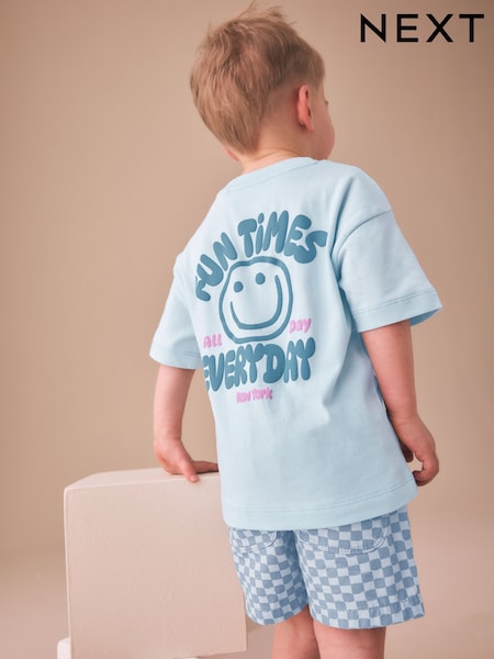Blue Checkerboard Short Sleeve T-Shirt & Shorts Set (3mths-7yrs)