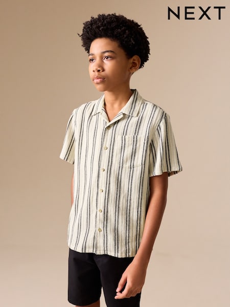 Black/Cream Short Sleeve Textured Stripe Revere Shirt (3-16yrs)