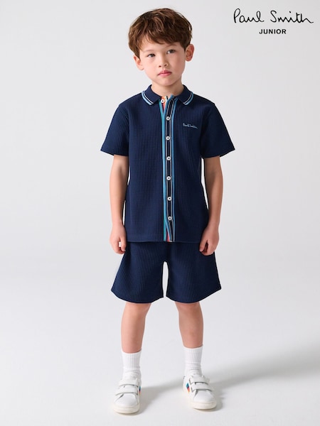Paul Smith Junior Navy Textured Shirt and Shorts Set