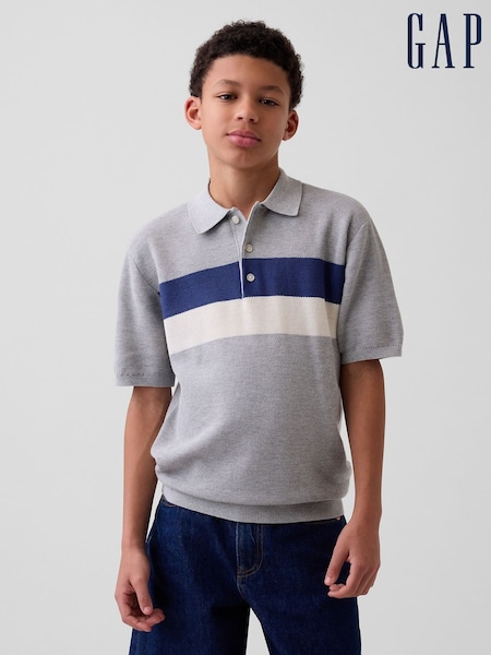 Gap Grey Relaxed Stripe Polo Knitted Shirt (4-13yrs)