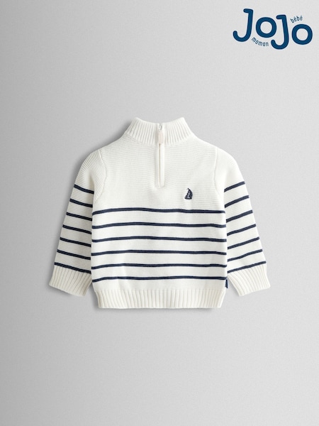 JoJo Maman Bébé Cream Navy Stripe Stripe Half Zip Jumper