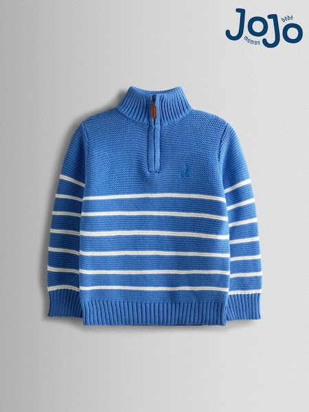 JoJo Maman Bébé Blue Cream Stripe Stripe Half Zip Jumper