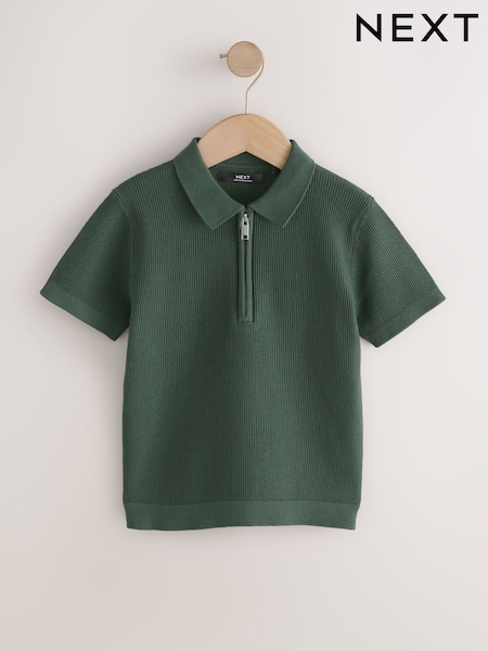 Dark Green Knitted Zip Neck Polo Shirt (3-16yrs)