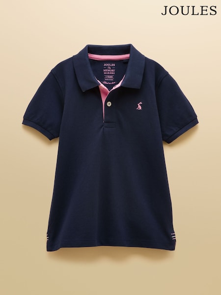 Joules Boys' Woody Navy Blue Short Sleeve Cotton Polo Shirt