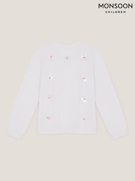 Monsoon White Communion Ottilie Appliqué Rose Cardigan