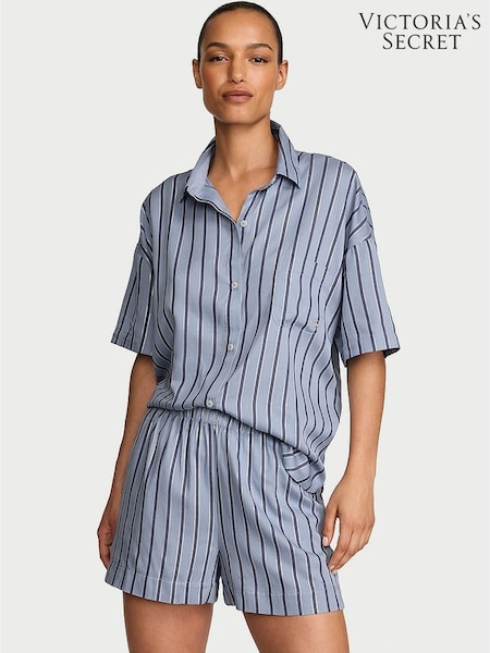 Victoria's Secret Ink Blue Shimmer Stripe Cotton Modal Short Pyjamas Set
