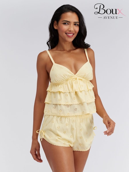 Boux Avenue Yellow Broderie Cotton Cami Pyjamas Set