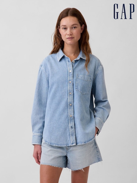 Gap Light Wash UltraSoft Denim Oversized Shirt