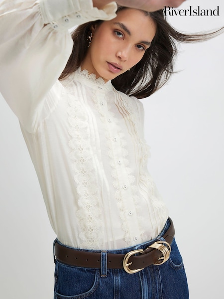 River Island White Long Sleeve Broderie Shirt