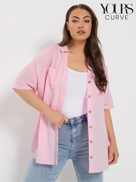 Yours Curve Pink Short Sleeve Linen Shirt