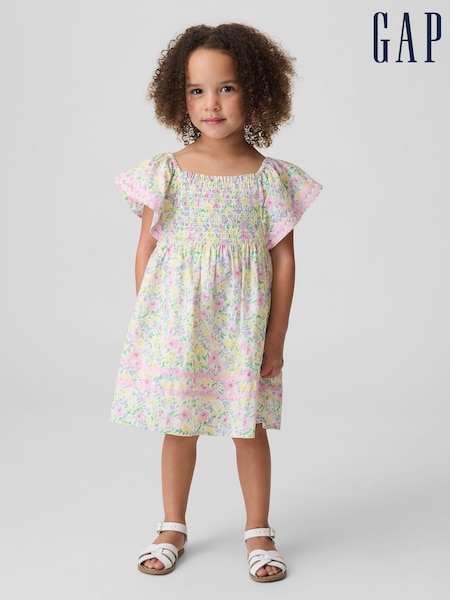 Gap Pink Floral Smocked Flutter-Sleeve Dress (6mths-5yrs)