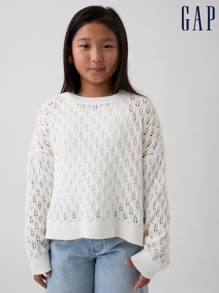 Gap White Crochet Oversized Crew Neck Jumper (4-13yrs)