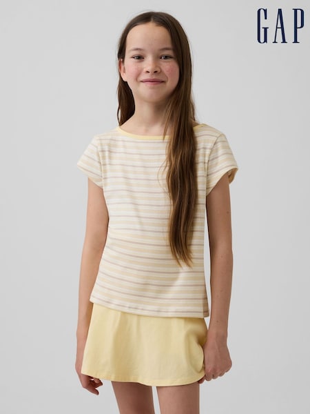 Gap Yellow Stripe Cap-Sleeve Fitted T-Shirt (4-13yrs)