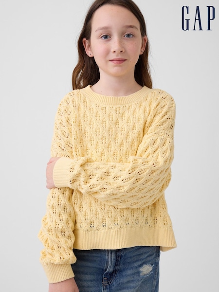 Gap Yellow Crochet Oversized Crew Neck Jumper (4-13yrs)