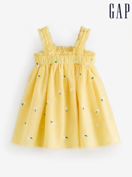 Gap Yellow Embroidered Daisy Tulle Dress (6mths-5yrs)
