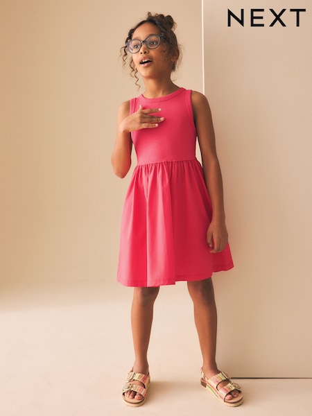 Raspberry Pink Jersey Woven Mix Sleeveless Dress (3-16yrs)