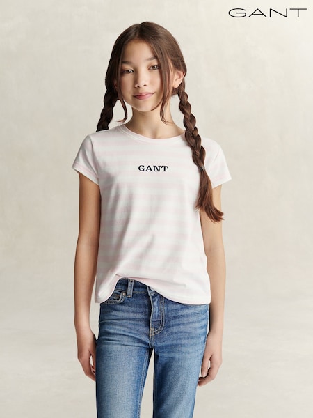 GANT Pink Stripe Cap Sleeve T-Shirt