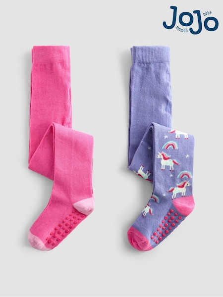 JoJo Maman Bébé Pink Cotton Rich Unicorn Tights 2 Pack
