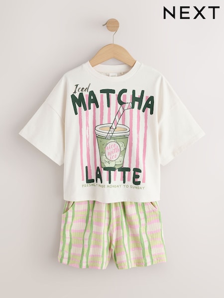 Cream/Green Matcha T-Shirt and Textured Shorts Set (3-16yrs)