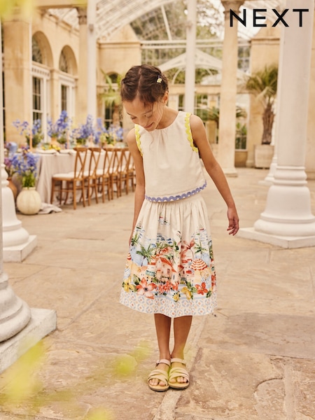 Cream/Blue Holiday Scene Top and Skirt Set (3-16yrs)
