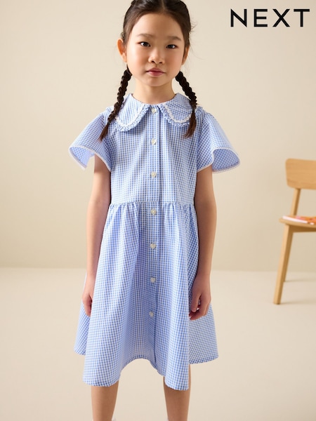 Blue Gingham Cotton Rich Angel Sleeve School Dress (3-14yrs)