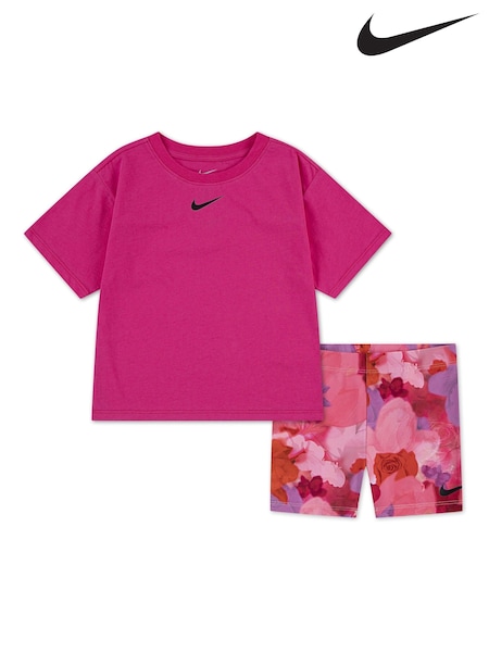 Nike Purple Little Kids Move With Nature Tshirt and Bike Shorts Set