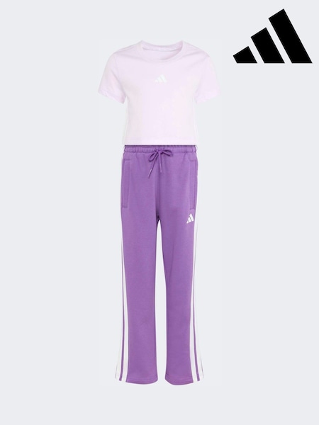 adidas Purple 3-Stripes Baby T-Shirt and Jogger Little Kids Set