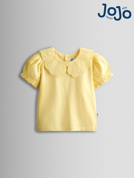 JoJo Maman Bébé Light Yellow Broderie Collar T-shirt