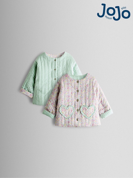 JoJo Maman Bébé Mid Pink Ditsy Floral Heart Pocket Quilted Jacket