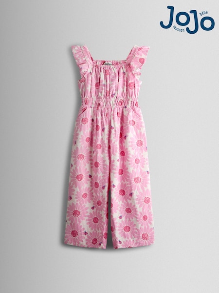 JoJo Maman Bébé Pink Daisy & Ladybird Strappy Seersucker Jumpsuit