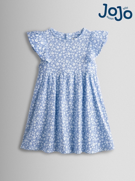 JoJo Maman Bébé Blue Ditsy Floral Ruffle Sleeve Dress